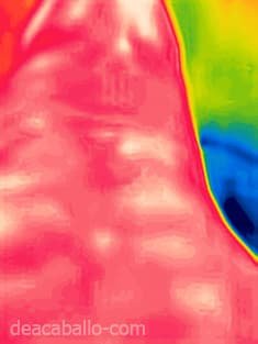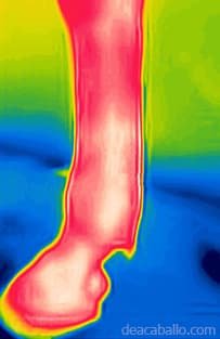 piel y el flujo sanguíneo subcutáneo. En el caballo, la simetría térmica es la norma; por lo tanto, el diagnóstico se basa en la comparación de patrones entre extremidades o regiones del cuerpo.