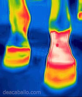 La termografía puede detectar aumentos de temperatura (de1°C a 2°C) hasta dos semanas antes de que aparezcan signos clínicos de cojera.